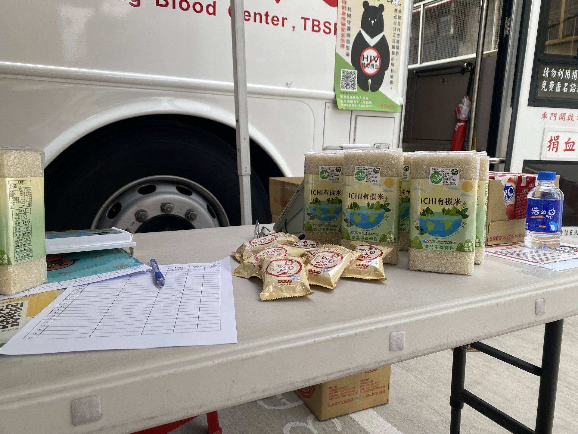 這捐血活動現場滿載愛心與溫情,ICHI有機米、點心飲品準備就緒,與您一同為生命加油!」